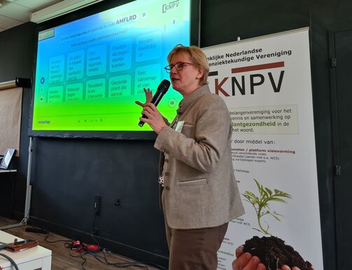 Dr. Kirsten Leiss (Senior Onderzoeker Gewasgezondheid, WUR, Bleiswijk) gaf een presentatie over Plantweerbaarheid.