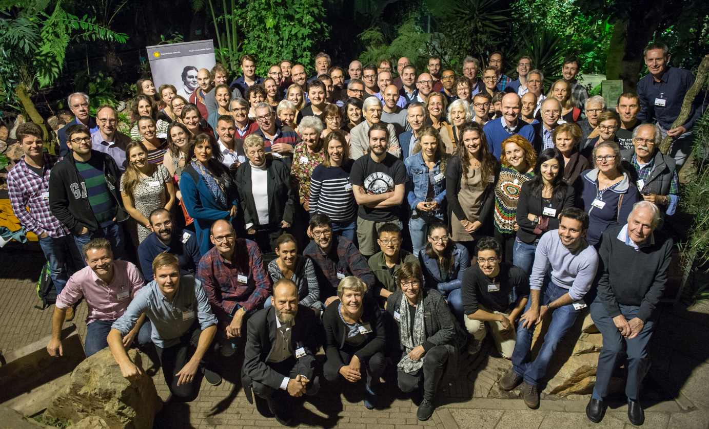 Ca. 100 fytopathologen die van verleden tot recent verbonden zijn geweest aan de WCS-lijn in Baarn, Utrecht of Amsterdam. De foto is gemaakt na afloop van het Johanna Westerdijk Legacy Symposium in 2017 (foto: Hans van Pelt).