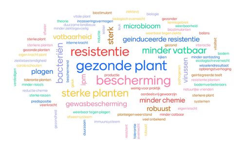 Vervolgens konden de deelnemers via een korte interactieve sessie onder leiding van Frank Hoeberichts aangeven waar zij aan denken bij 'plantweerbaarheid'. Dit leverde een mooie verzameling aan termen op. Ook konden de deelnemers aangeven welke aspecten van plantweerbaarheid voor hen het belangrijkst zijn. Vooral de sturing van plantweerbaarheid in de praktijk blijkt op veel interesse te kunnen rekenen.