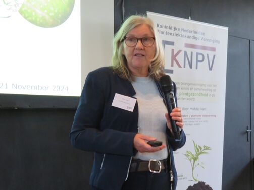 Dr. Kirsten Leiss (Senior Onderzoeker Gewasgezondheid, WUR, Bleiswijk) gaf een presentatie over Plantweerbaarheid.