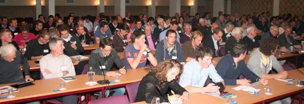 André van der Wurff (Wageningen UR Glastuinbouw) nam ons mee naar de ‘wondere wereld van de glastuinbouw’, waar in 100 jaar recente geschiedenis grote veranderingen hebben plaatsgevonden. Interessant genoeg hebben al die (systeem)innovaties nog niet geleid tot het vrij zijn van pathogenen. Nog steeds wordt gezocht naar duurzame oplossingen met name met preventieve werking. Een mogelijkheid kan zijn het meer weerbaar maken van de plant door sturing van het licht in de kas. Diverse onderzoeken werden gepresenteerd waarbij de invloed van middelen en omgeving op onder andere Pythium en Meloidogyne gebleken zijn. Met een pleidooi voor voortgang in het onderzoek naar systeemontwerp verwachtte André uiteindelijk dichter bij de weerbare teelt te komen.
